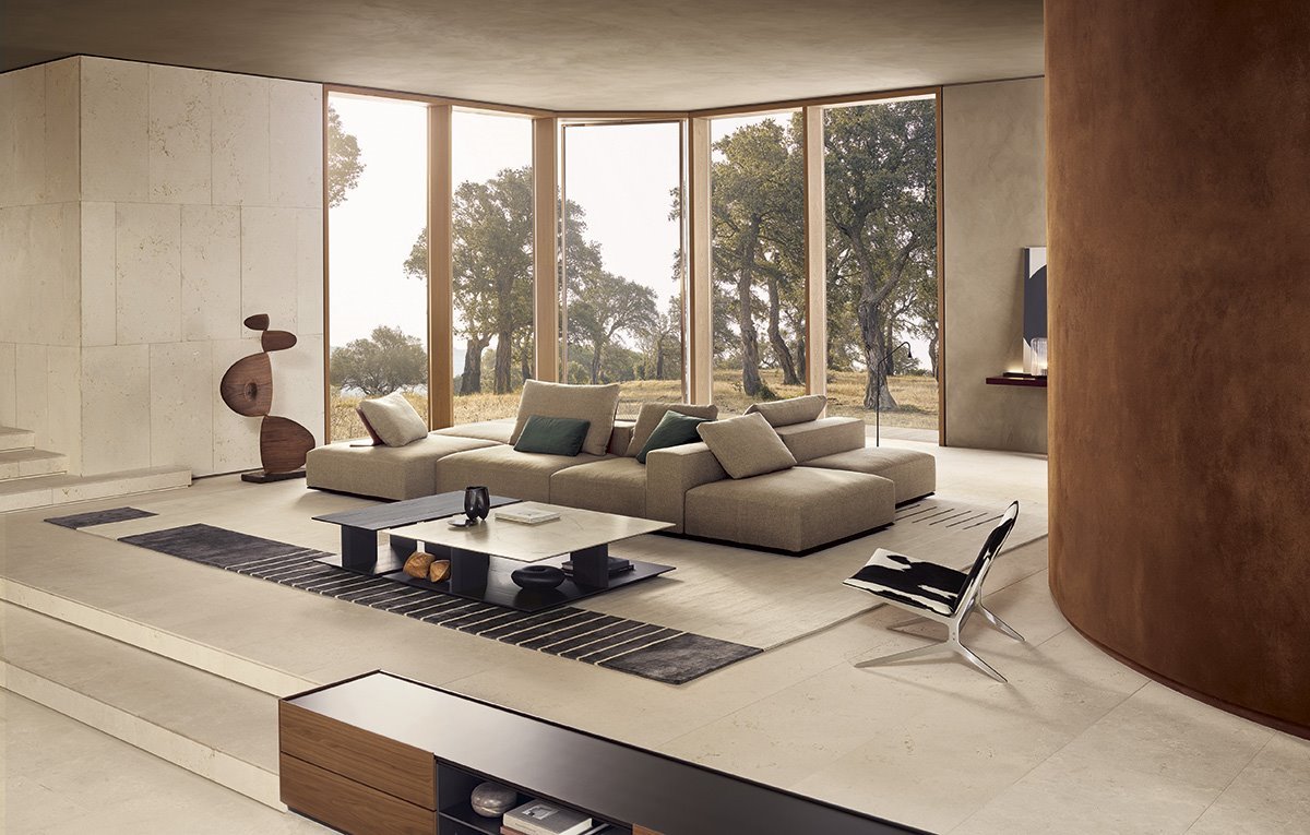 Westside è un sistema multifunzionale che riscrive con eleganza l’esperienza della zona living. I moduli imbottiti si affiancano tra loro per creare le più diverse configurazioni – dall’isola bifacciale al classico divano angolare – mentre gli elementi come la chaise longue ergonomica, lo schienale mobile e i tavolini ne arricchiscono la funzionalità. Un archetipo di convivialità da vivere con la massima libertà.